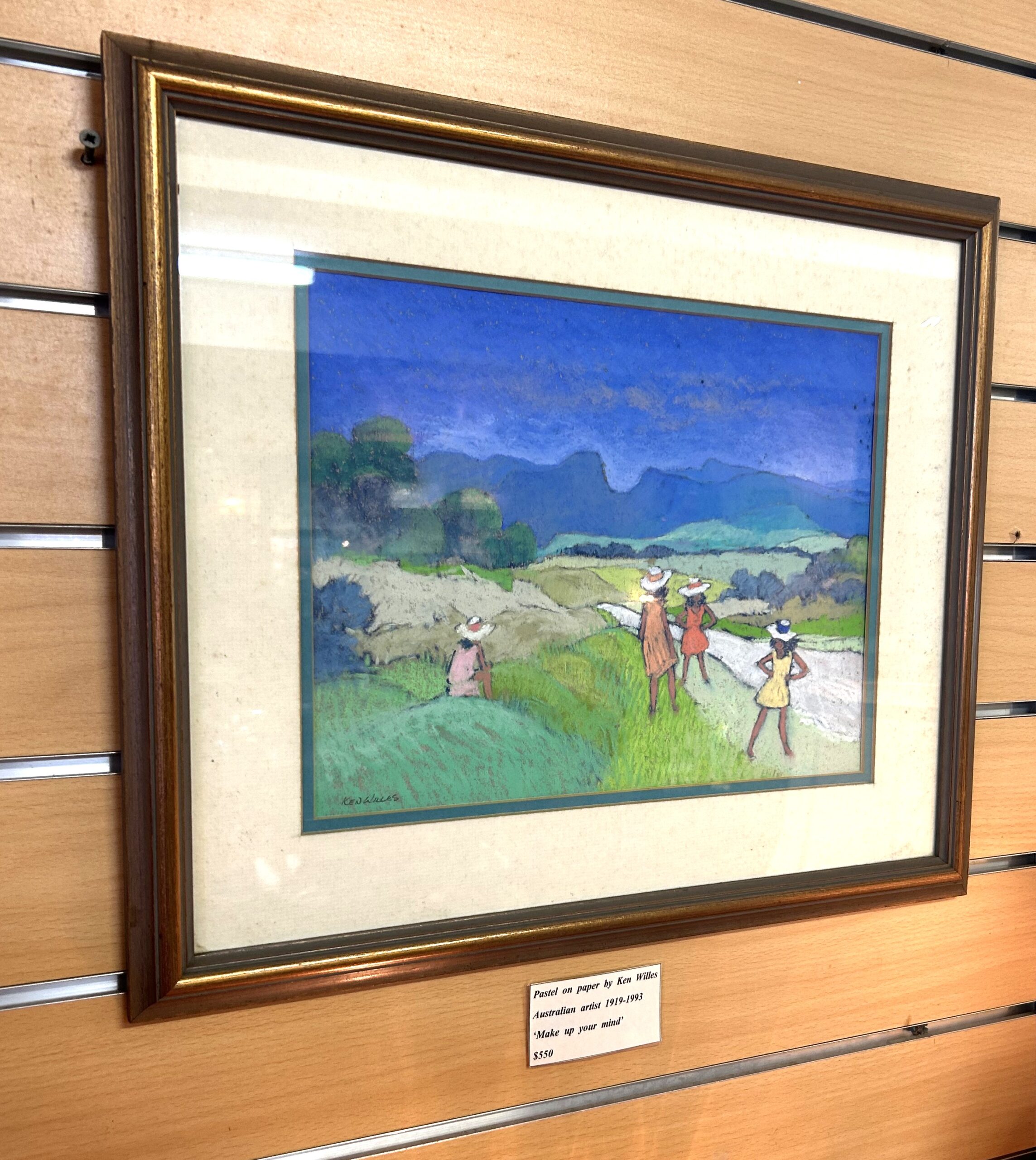Pastel on paper by Ken Willes Australian artist 1919-1993 ‘Make up your mind’